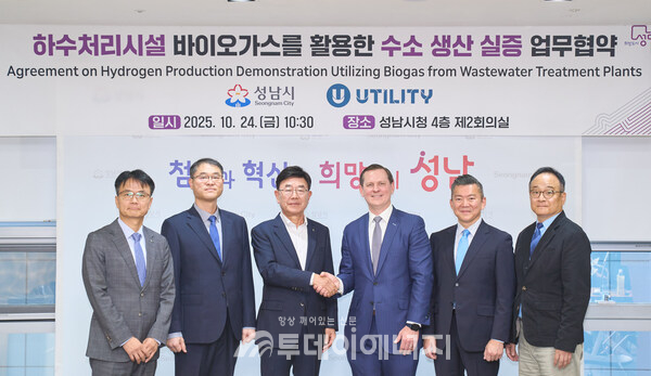 미국 텍사스주 휴스턴 / 대한민국 성남, 2025년 10월 28일 -- 미국에 본사를 둔 글로벌 경제적 산업 탈탄소화 기업 **유틸리티(Utility)**는, 자사의 독자적이면서 검증된 H2Gen® 기술 플랫폼의 상용화를 추진 중인 가운데, 오늘 성남시청에서 성남시와 함께 성남수질복원센터 내 H2Gen 실증•인증 플랜트 구축을 위한 프로젝트 협약을 체결했다고 발표했다.