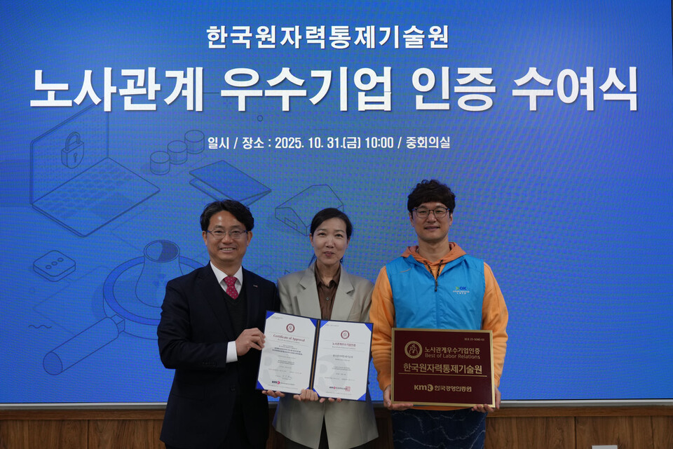 [투데이에너지 김진우 기자] 한국원자력통제기술원(원장 이나영)은 한국경영인증원이 주관하는 노사관계 우수기업 인증 수여식을 31일 개최했다.