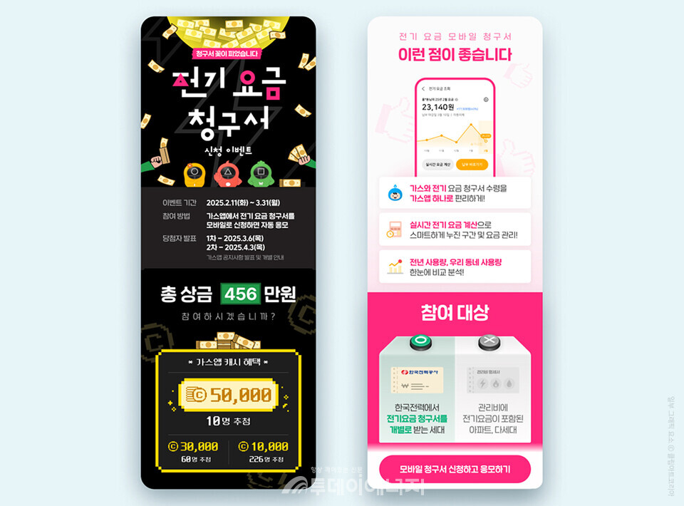 가스앱은 가스 요금뿐만 아니라 전기 요금까지 손쉽게 관리할 수 있는 모바일 플랫폼으로, 지난 8월 한국전력과 협업해 ‘여름 냉방비 지원 1+1 이벤트’를 성공적으로 진행한 바 있다. 당시 34만 명 이상이 참여하며 높은 관심을 받았고, 이를 계기로 가스앱은 자체적으로 전기 요금 지원 이벤트를 마련했다.