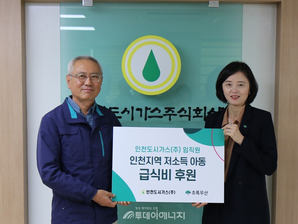 인천도시가스는 5월 22일, 초록우산 어린이재단에 저소득 가정 아동을 위한 급식비 후원금 1500여만 원을 전달했다고 밝혔다. 이번 모금은 총 195명의 임직원이 자발적으로 참여해 마련한 것으로, ‘인천지역 저소득 아동 급식비 지원 프로그램’에 전액 사용될 예정이다.